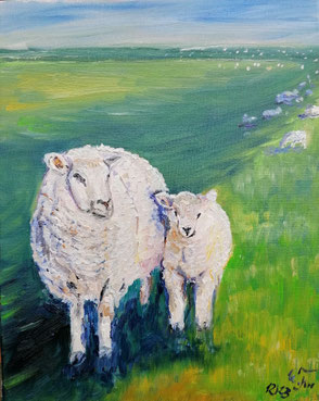 Schaf mit Lamm Öl 24 x 30. 170,-